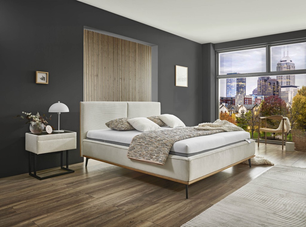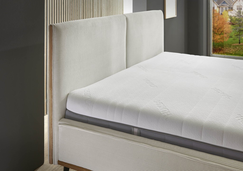 Liegefläche ca. 180x200 cm, Bezug Kama natur (PG6), Kopfteil 23925, Rücken unecht, Metallfuß WO10-18/M01 schwarz Höhe 18 cm, Unterbau KU 24 kubisch ca. 24 cm Höhe 2 x LR 300N - Komfortabler Zonen-Rahmen, nicht verstellbar, mit 42 flexibel gelagerten Mehrschicht-Federholzleisten. Schulter- und Beckenabsenkung, Stufenlose Härteregulierung in Becken und Lordosebereich. Stabiler Außenholm mit holmüberdeckter Leistenlagerung, Höhe ca. 9 cm 1 x M500 KA H2 Boxspringmatratze- mix it, Kern Doppelfederkernmatratze mit einer Kombination aus Bonellfederkern und Taschenfederkern, 1000 Taschen-Federn/2m² und 380 Bonell-Federn/2m²,Schaumauflage mit Kaltschaum Höhe ca. 24 cm Belastbarkeit mit Matratze bis 130 kg 1 x M500 KA H3 Boxspringmatratze- mix it, Kern Doppelfederkernmatratze mit einer Kombination aus Bonellfederkern und Taschenfederkern, 1000 Taschen-Federn/2m² und 380 Bonell-Federn/2m²,Schaumauflage mit Kaltschaum Höhe ca. 24 cm Belastbarkeit mit Matratze bis 130 kg